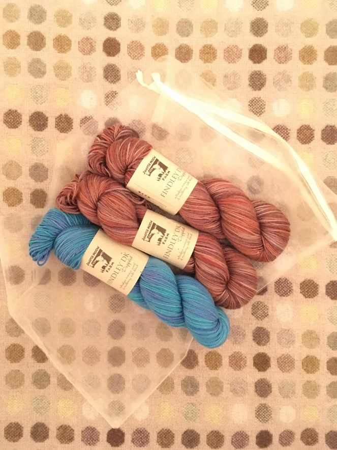 My Juniper Moon Findley DK Dappled arrived this week. It’s a lovely 50:50 mix of extrafine merino wool and mulberry silk.