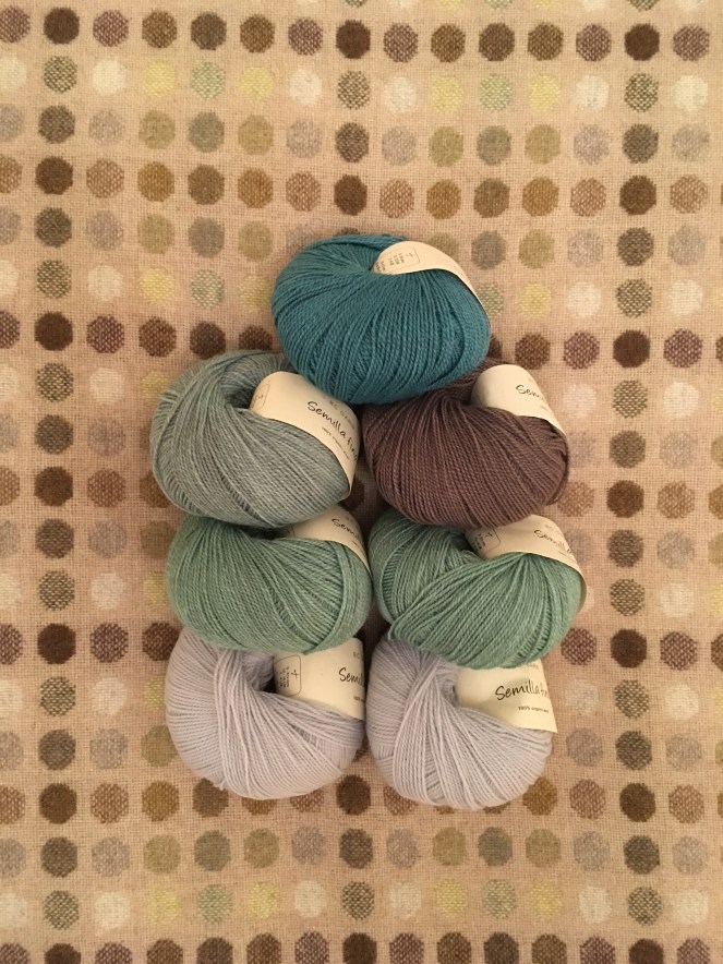 I am hoping that these colours will create a nice scarf with a bit of plaid in it. The light blue is the main colour and then the others will form alternating thickness of warp and weft, and some accent colours, with the crossovers blending together to create interest. No weft floats in this one as the interest will be the fulling and blend of the yarn. That’s the plan anyway. It’s not lambs wool which would be ideal. And it’s not cashmere which would be too expensive for this test.