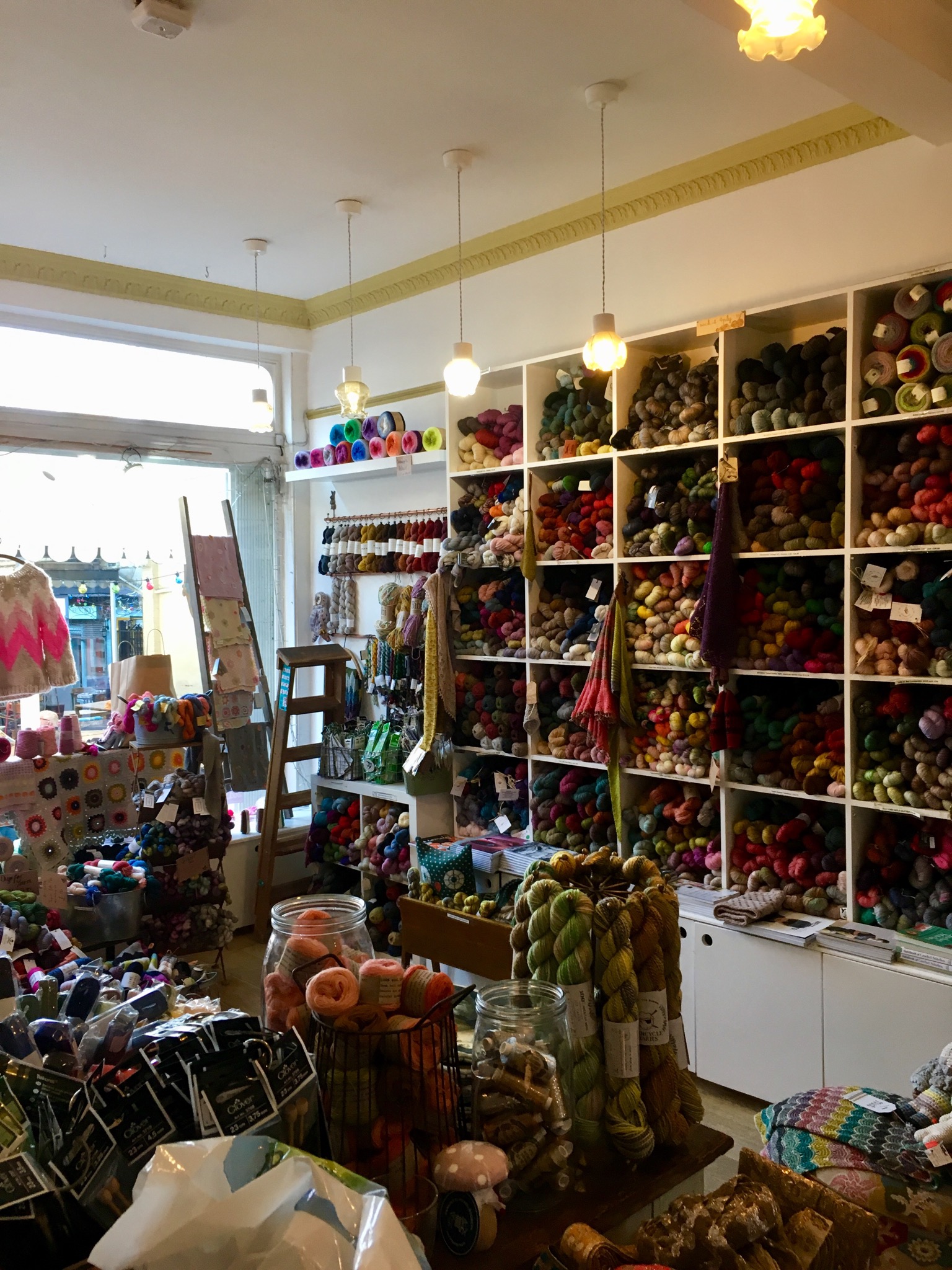 Another short trip took me to Loop, located in Angel. It’s a lovely little shop filled with lots of yarn, accessories and books on knitting and crochet. I wasn’t really looking for anything, but suddenly spotted some Brooklyn Tweed Loft; the yarn that my jumper (that I need to start next) is meant to be knitted from. I had brought something similar due to the cost to ship from the US. But here was what I really needed to get my gauge right.