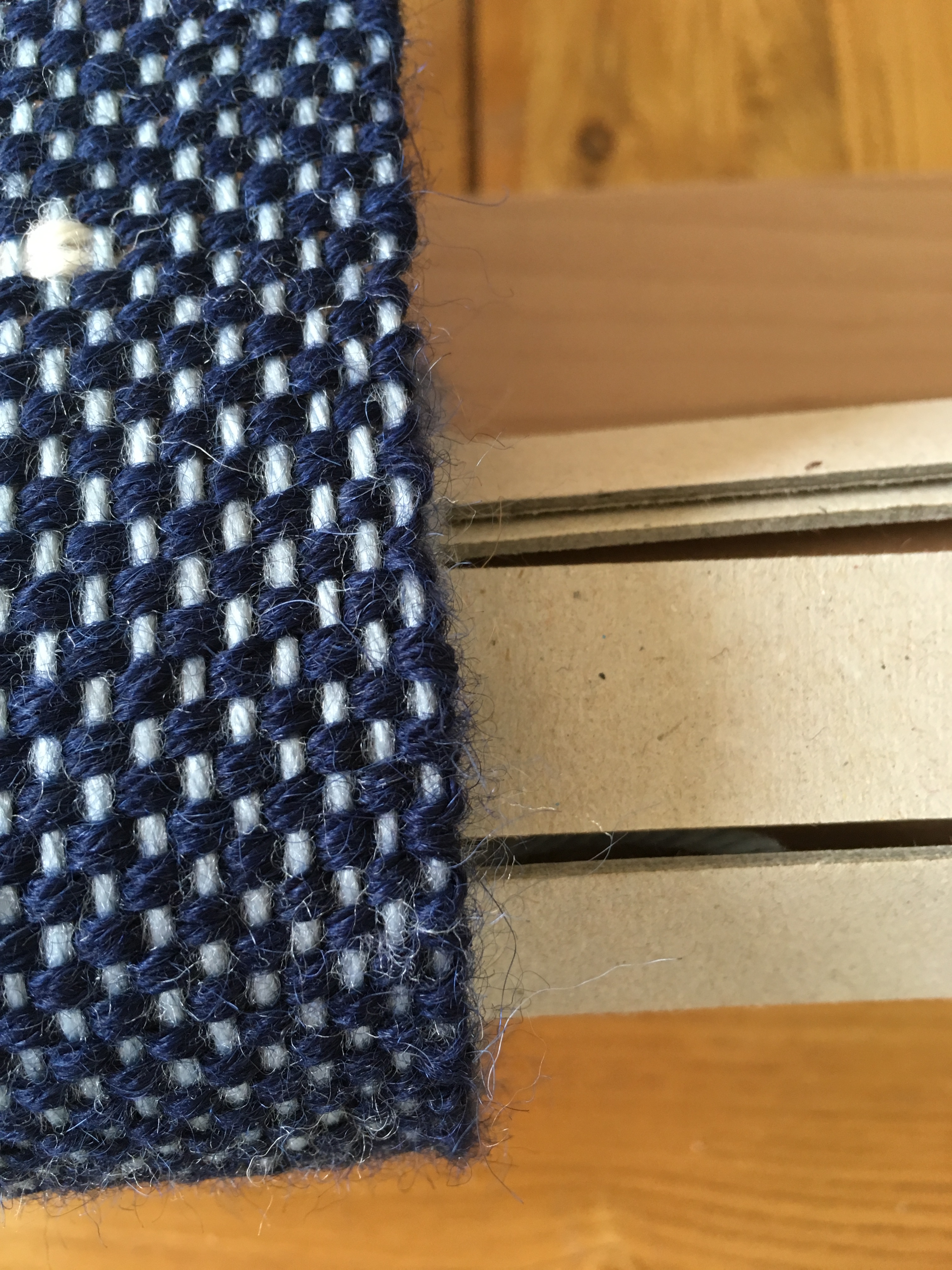 Today will be getting through to the end of the weavable (is that a word) warp and cut from the loom. I am pleased with my selvedges. They seem to have remained pretty constant. You may be able to see in the pictures above that they don’t wobble about when wound, as in the width of the fabric is consistent.