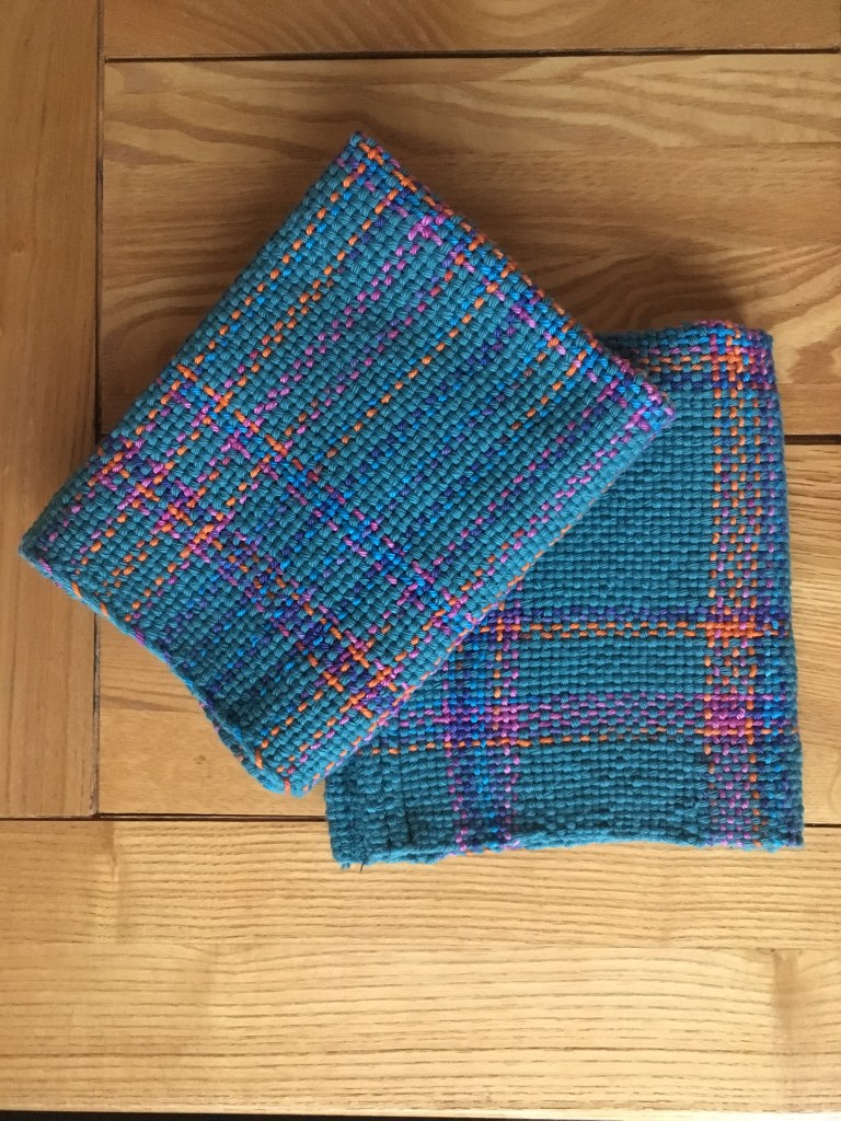 Pleased that these have finally been finished and can be put to service in the kitchen. I have plenty more of the Rico yarn, so the loom will have to be set up again soon.