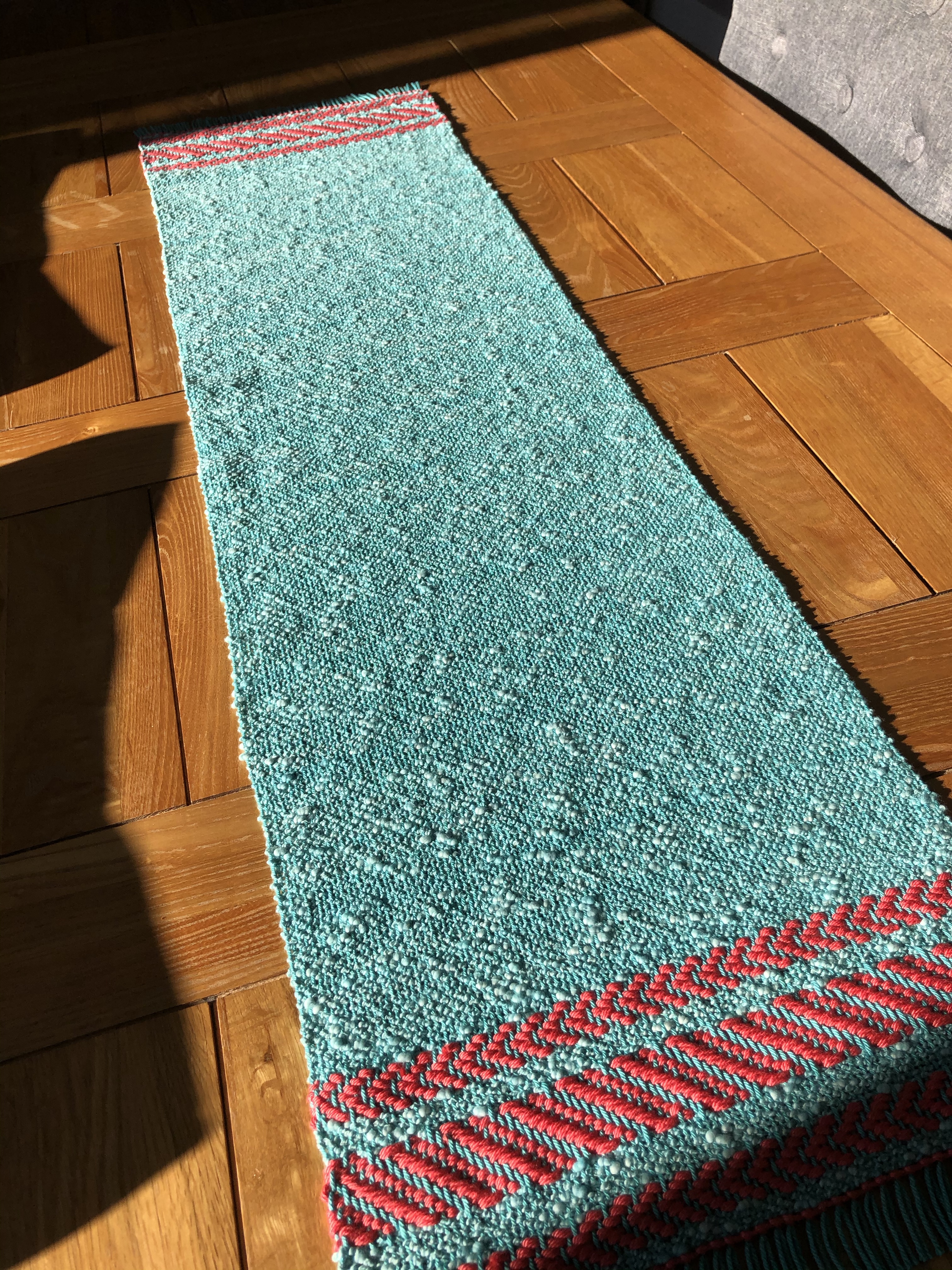 I am sure I will be making another runner for our home before Christmas. But we have a table that seats 8, so it’s got to be a long one. At least now I have the space to be able to add warp to my loom for something that is almost 3 metres.