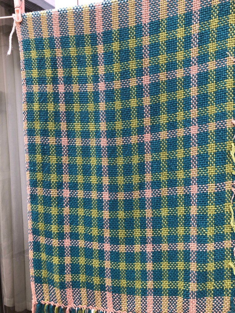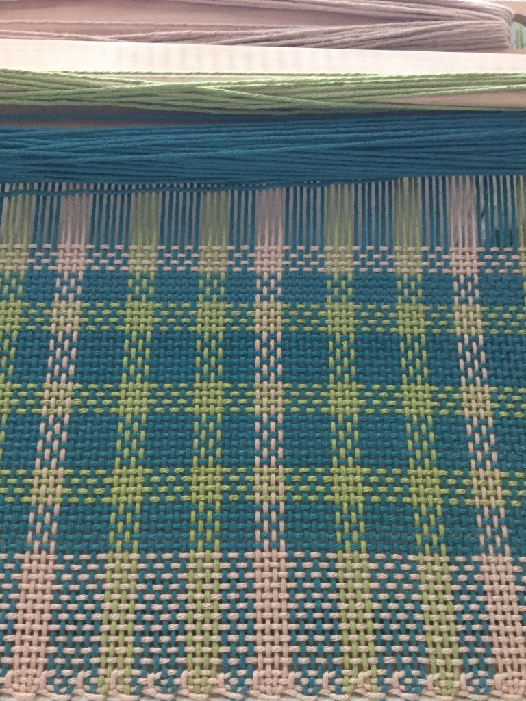 Unfortunately, weaving, if you have just one loom, you are stuck until you finish what’s on there. Crochet or knitting, you simply grab another set of needles or a new hook.