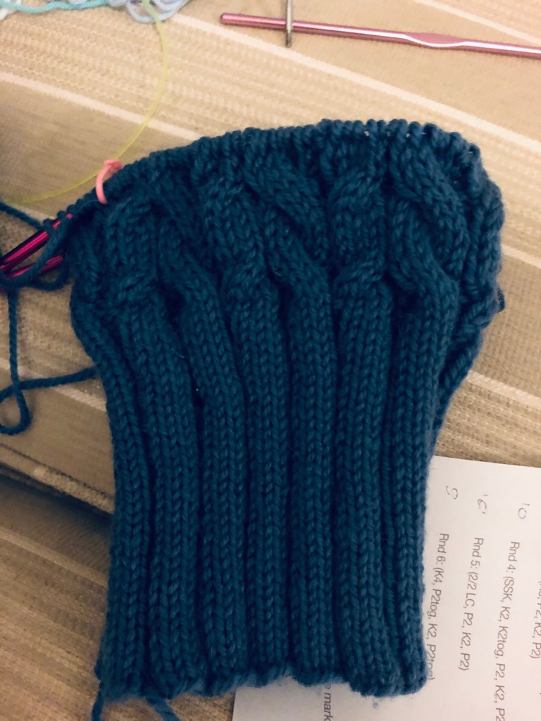 This morning I tinked back, then dropped a stitch in the process and just ripped the cast on off the needles and started again. It’s now about an inch into the rib section. Another 3 inches to go.