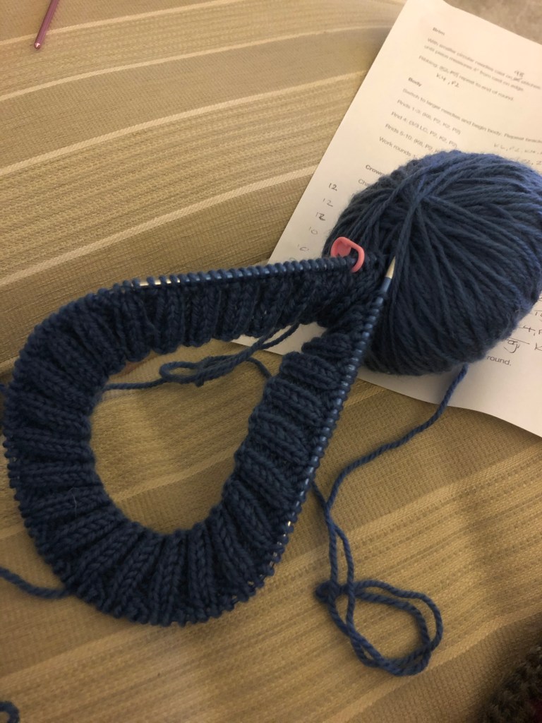 Yesterday, I ripped it back completely and cast on again with the higher count. It was late evening, so I figured I would do the next round in the morning. Stupidly, I picked it up and thought I would slip in one round at least.