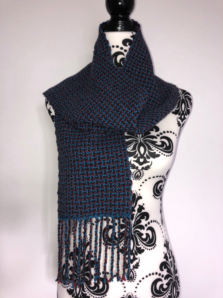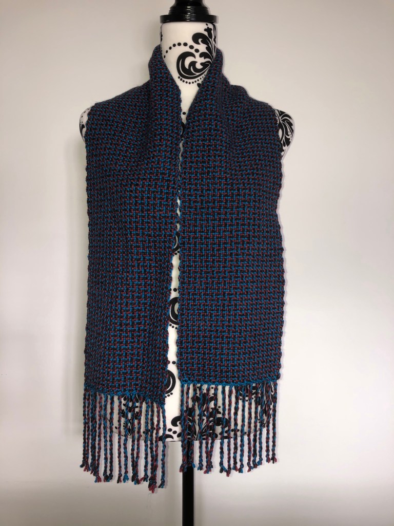 Yesterday I finished the fringe, wet finished and dried the scarf. Fringe trimmed and here we are with a lovely finished scarf.