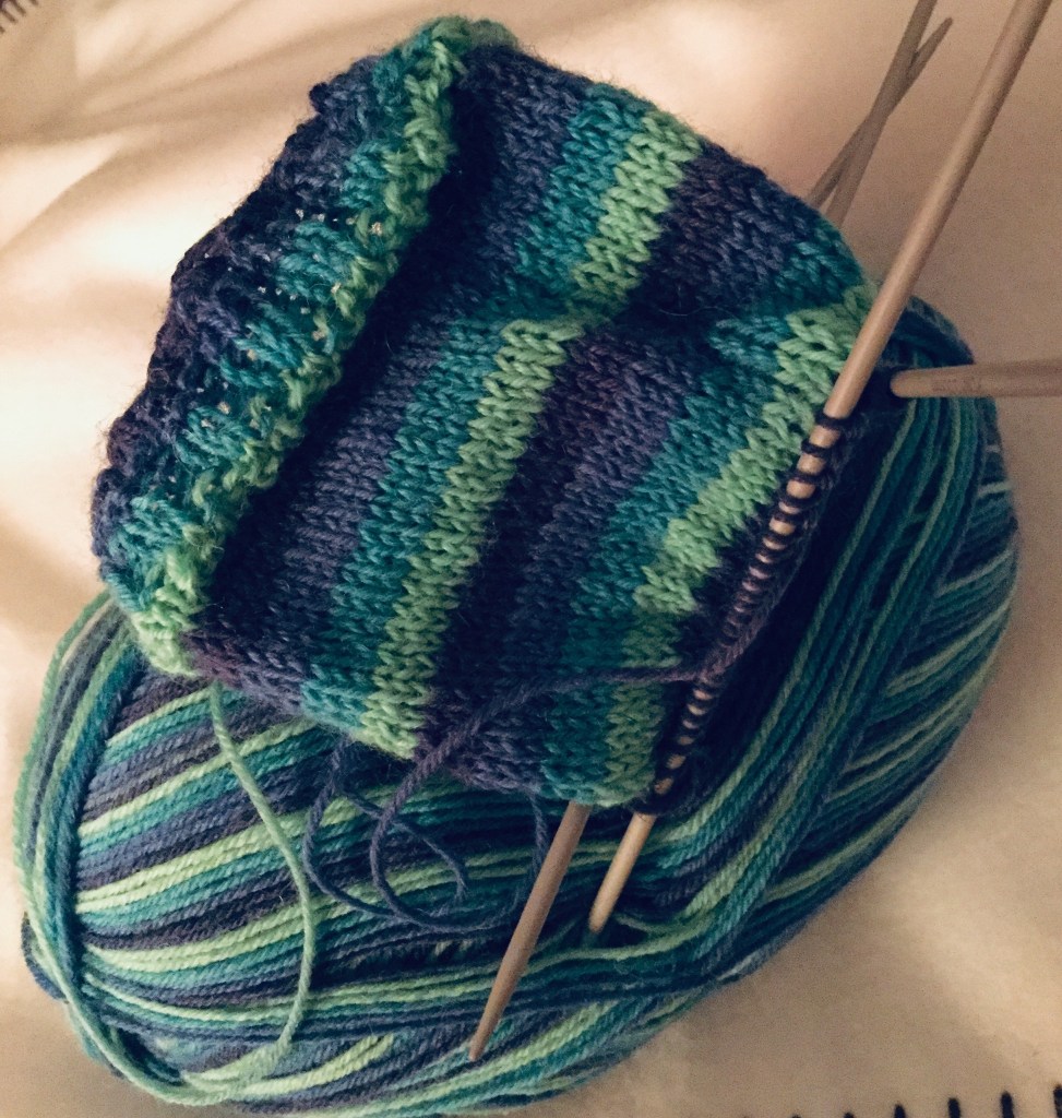 The yarn is WYS sock yarn. I was giving socks ago, inspired by all you lovely fellow bloggers that just make it so easy. These weren’t coming out right and so they have slumbered a looong time. And now they need to be repurposed in weaving. So when I find them, I’ll frog it and reuse.