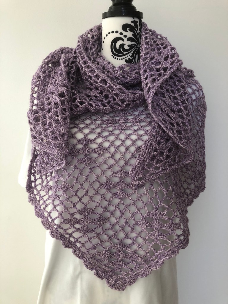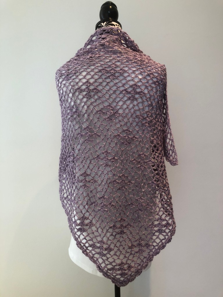 The shawl is now complete and all blocked. It’s turned out a good size at 78 inches along the long side.