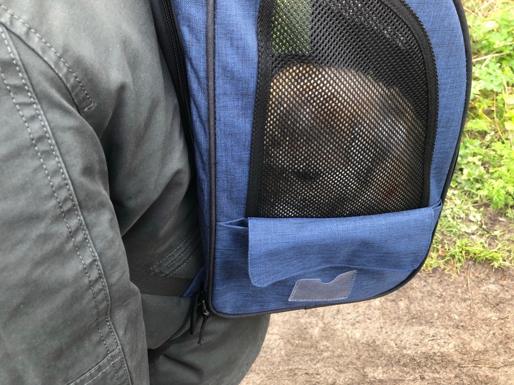 1. That’s a good backpack. Tully (15 yo mini JRT) has a cross shoulder bag where she can dry off and watch the world for a bit but I had to put a flat bottom in it.