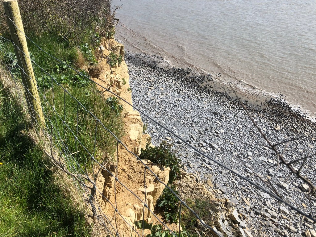If you zoom into the picture top centre you can see the old fence suspended. This is a recent rock fall.