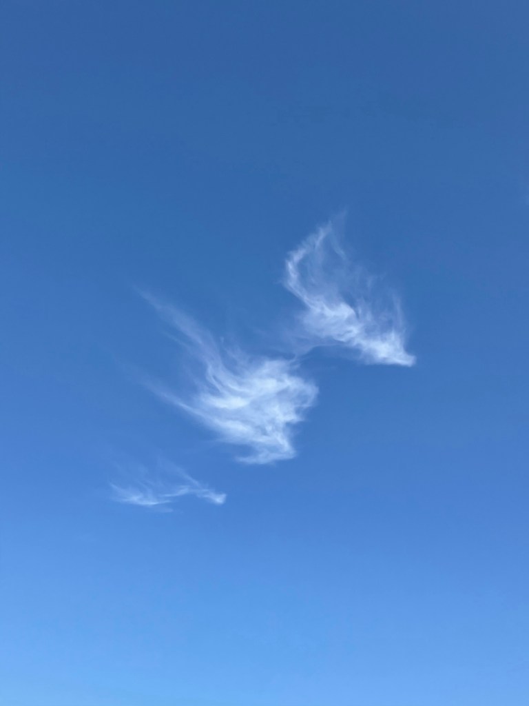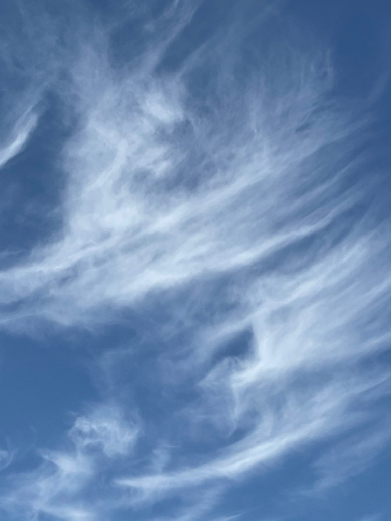 I took this picture of the clouds here today. I love a bright blue sky and wisps of clouds.