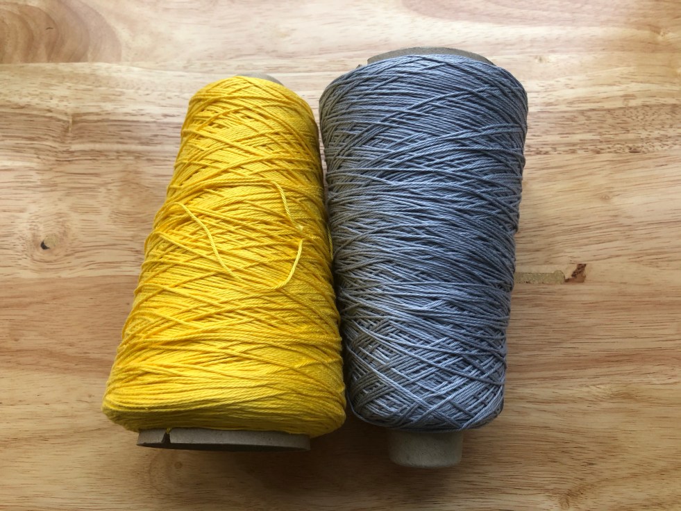 All done. I now need to finish off the ends and give it a good wash and dry to full. Now it is off tension, the log cabin pattern is clearer. Once washed, it should be stronger. I love the colours, although, the light grey is more a steel blue when mixed with the yellow.… Continue reading Just a quick weave