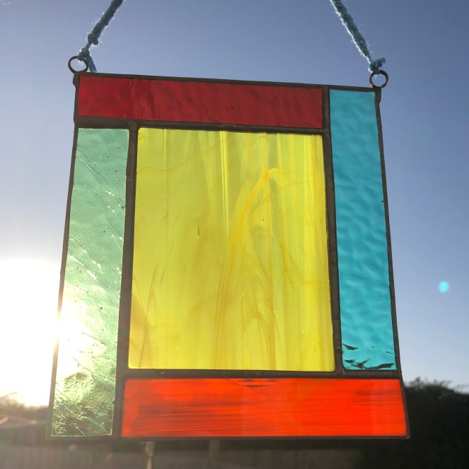 The workshop I attend uses the Tiffany method of copper tape and solder. I’ve not moved on to proper leaded stained glass.