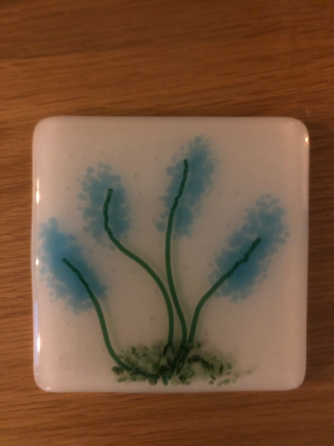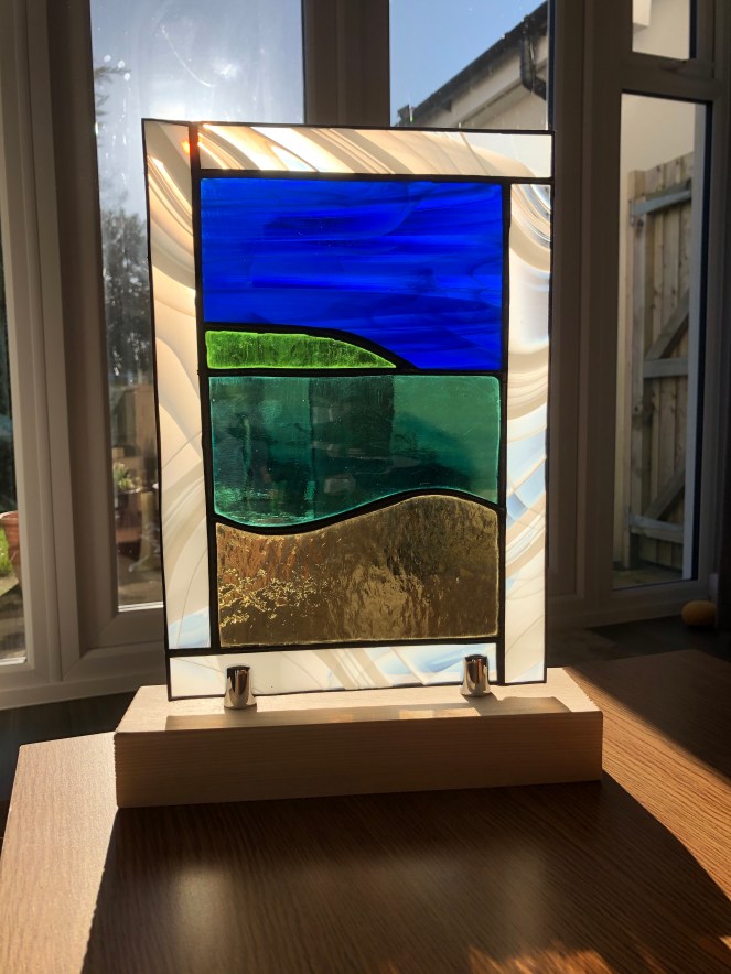 This piece I made at what was a postponed Fused Glass workshop, due to the COVID-19 pandemic. A bluebell Wood scene, there are elements I like and some I kick myself for, but this is all part of the learning curve.