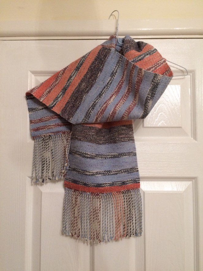 This shawl was a woven piece using West Yorkshire Spinners sock yarn in two shades of pink, one of which was variegated. This was given to my sister.